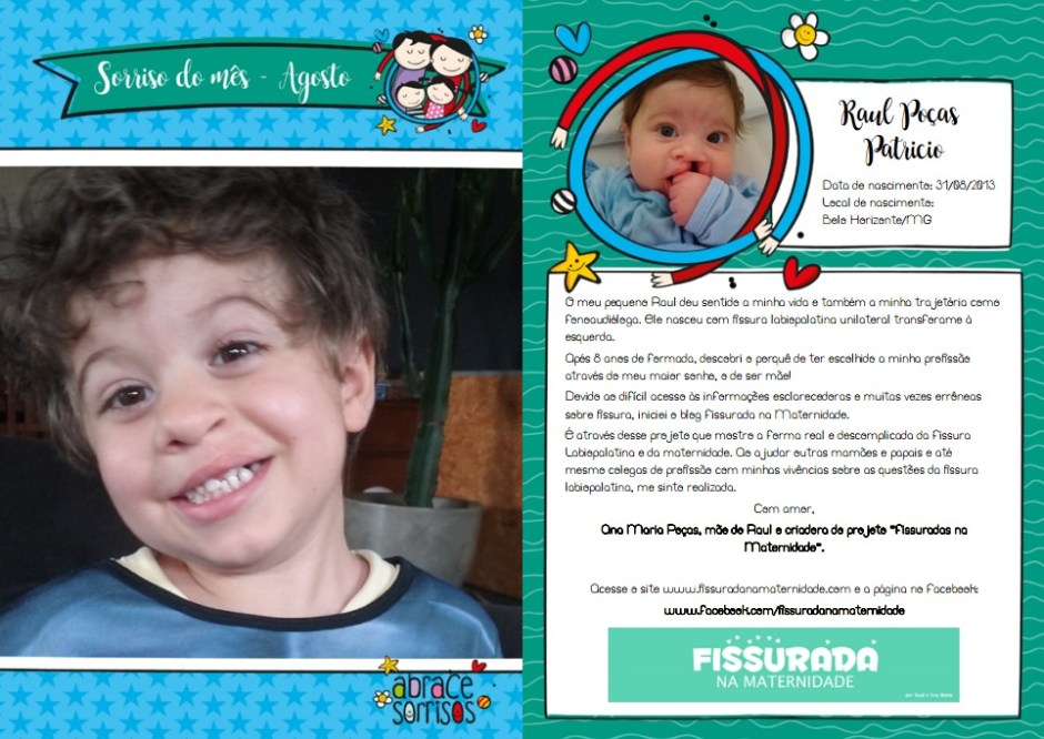 A notícia é: está tudo bem com o Raulzito! O Dr Hugo não estava no dia que fomos, foi a médica assistente dele que nos atendeu e, ao entrarmos na sala dela, ela logo falou: “Gente, cadê a cicatriz desse menino!?” E depois foi emendando: “Nossa, o Dr Hugo arrasou nessa cirurgia!” Palavras que me fizeram arrepiar e agradecer a Deus imensamente por tudo o que vencemos até hoje! Foi bom ele não estar porque foi uma visão de outra médica, que estava “avaliando” um trabalho de outro profissional. Na hora que não o vi, fiquei um pouco triste porque queria tê-lo visto mas logo pensei que estava sendo ótimo para gente, pois passaríamos por outra avaliação médica. Acho que só quem passa por situações como essas com os filhos sabe o que estou escrevendo… é um alívio tão grande ver que seu filho é um vencedor, que tudo o que você temia durante a gravidez e ao nascer vendo-o em seus braços, sem saber lidar com os cuidados daquele ser aparentemente tão frágil, na verdade não passava de medos e inseguranças momentâneas. Tudo deu certo! Deus foi muito generoso conosco! A fala do Raul está perfeita, a audição também e em relação a cirurgia está tudo ok. A conduta da médica foi marcar o retorno para o ano que vem, para acompanharmos a evolução dele até os 10 anos de idade, pois é nessa idade que se começa a pensar na cirurgia de preenchimento ósseo da gengiva.