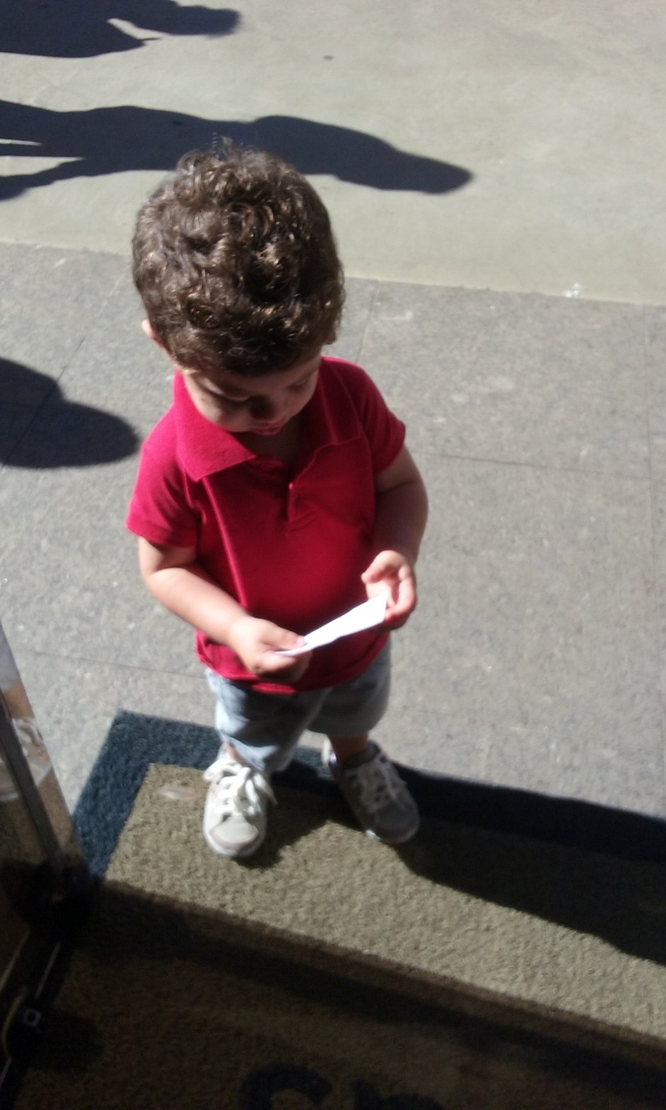 -Tchau, filho! Daqui a pouco voltamos para te buscar.