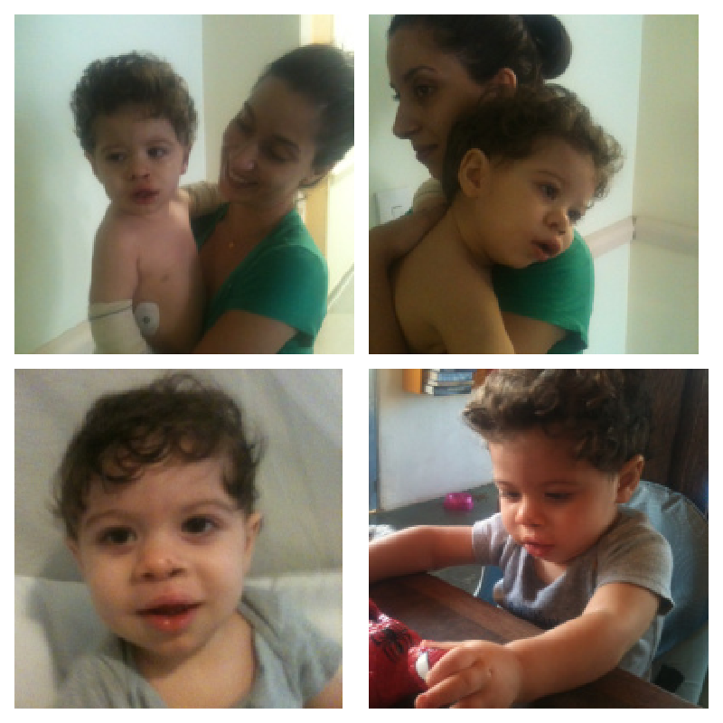 Abaixo as fotos as duas que estou de blusa verde foram tiradas após o procedimento da palatoplastia. As duas outras do Raul sozinho, um dia após a cirurgia.